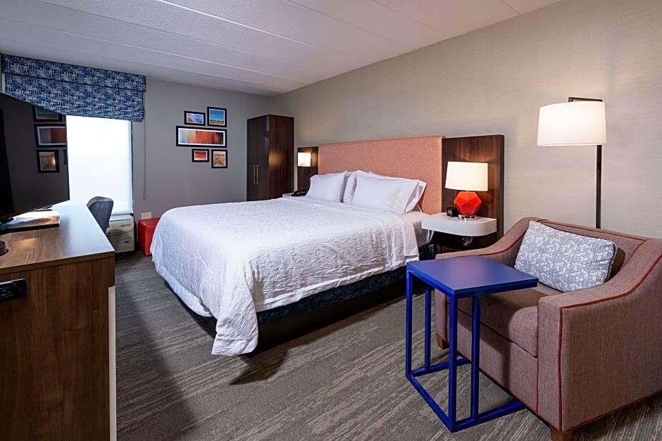 This guestroom features a flat-screen TV, work desk and a small seating area. A microwave and refrigerator are provided.